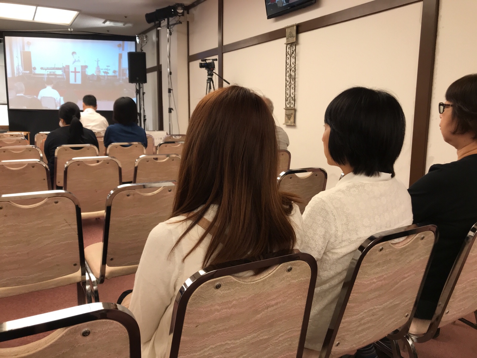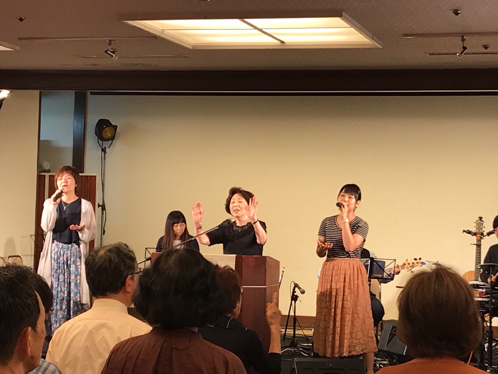 エステル鈴谷さんの導きで前半賛美をささげています。
