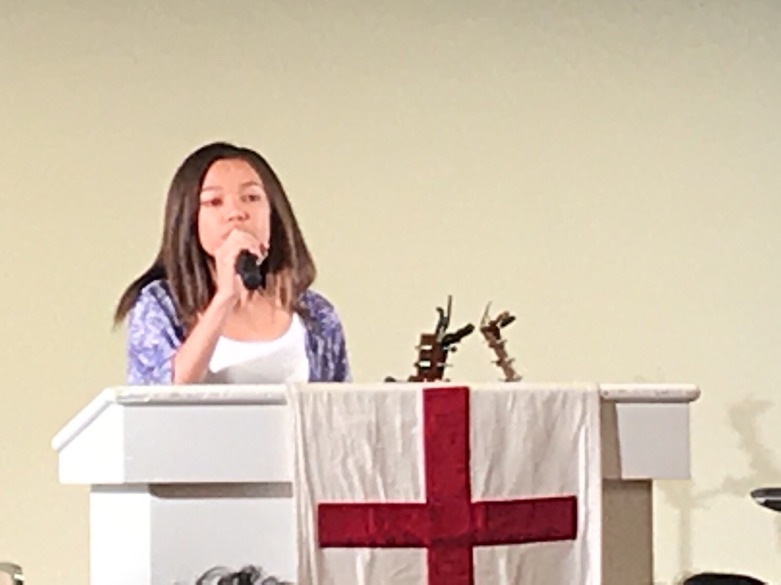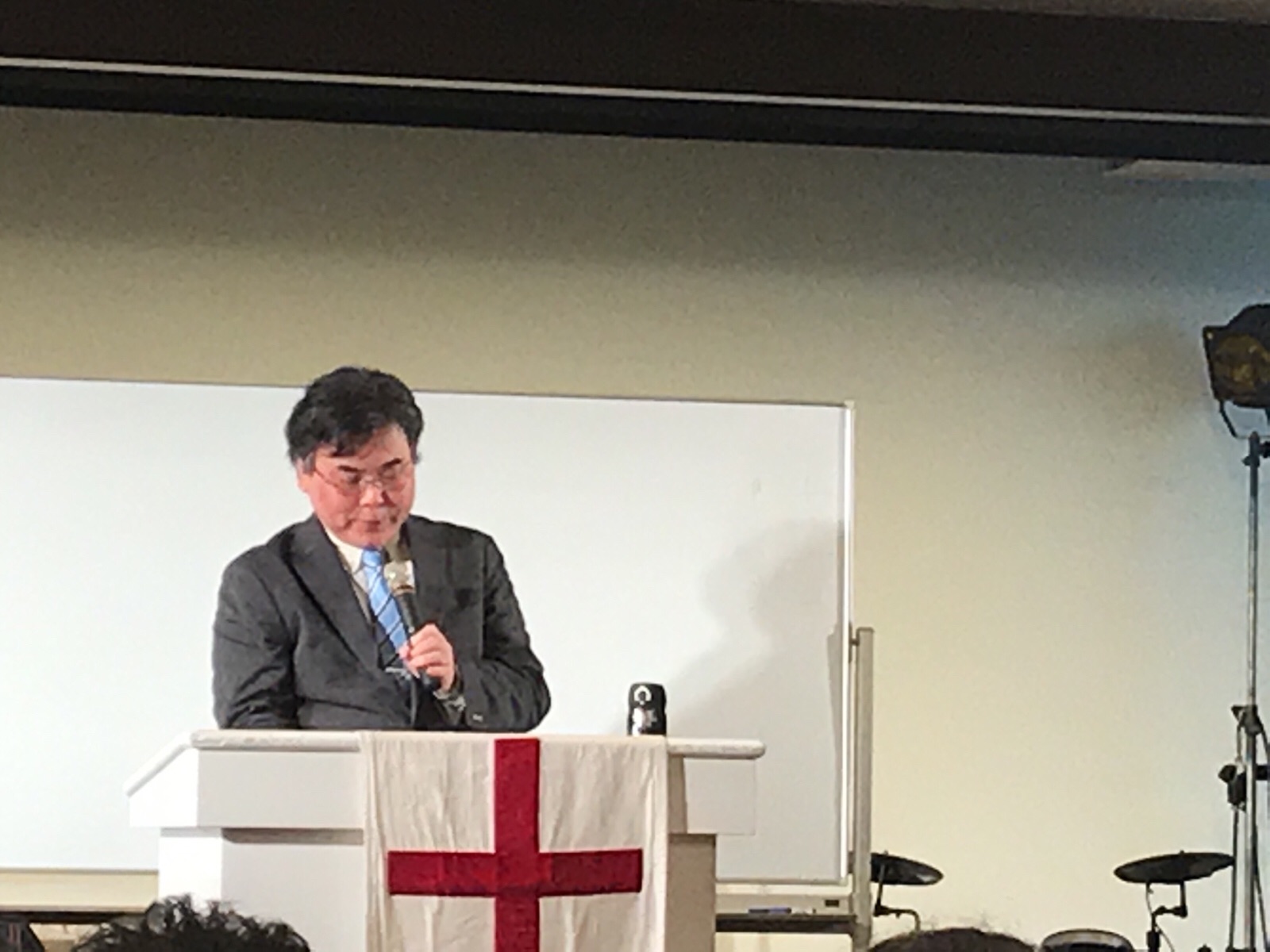 角笛で始まり、賛美、そしてハワイ教会の牧師であられる淵野さんのお証しです。