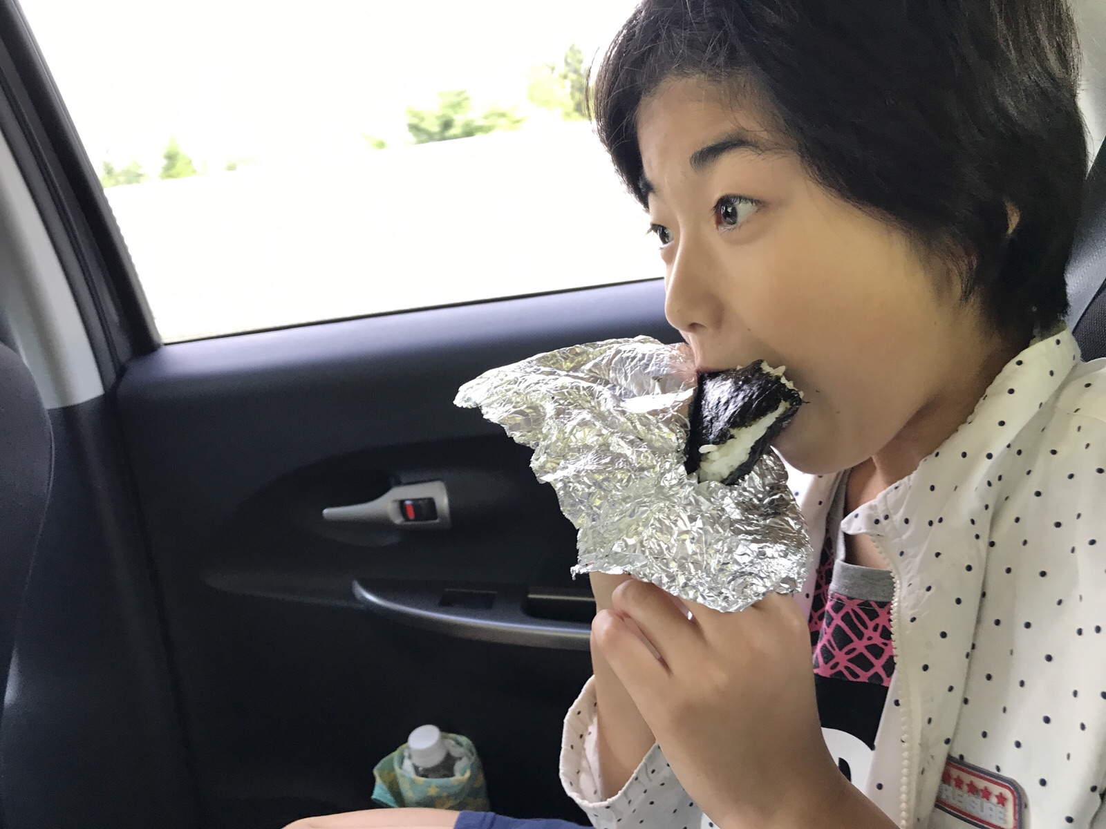 オニギリ食べてます。朝ごはんもおかわりしてました。白馬キャンプでは神様の恵みいっぱい受けます。