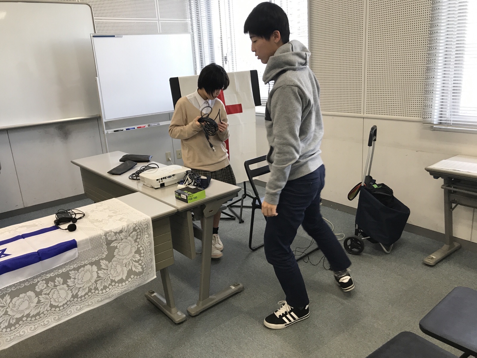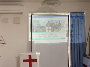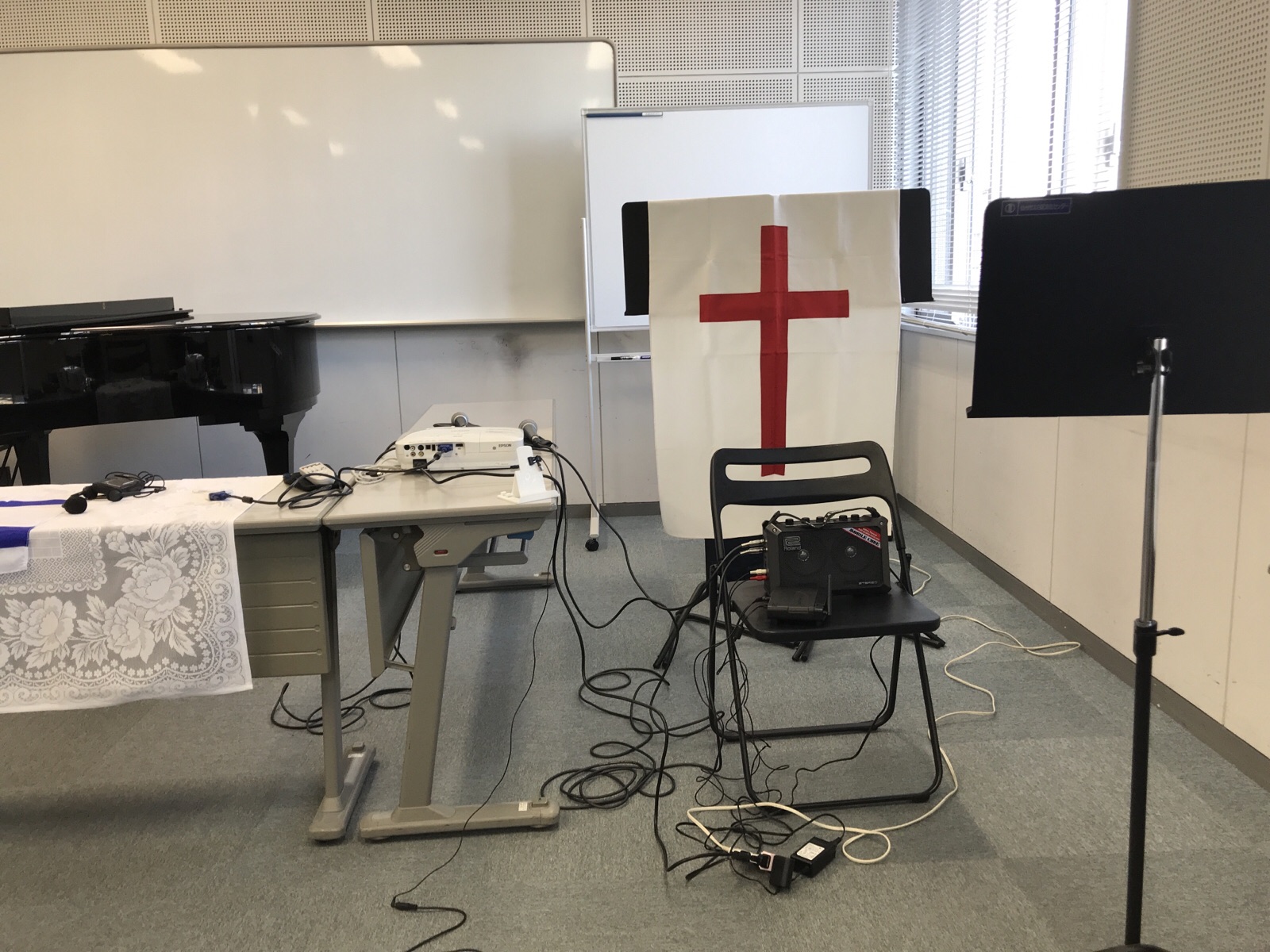 神様の恵みの中で礼拝会場の準備進行中ー。