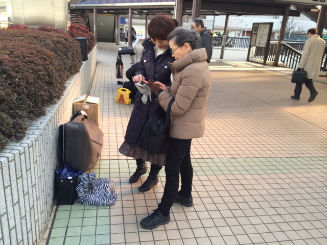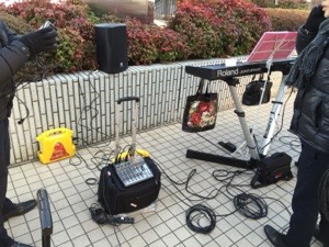 駅前にて設営中です