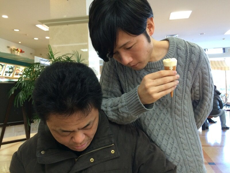 先程のサービスエリアでアイスを食べてたダビデ君。 Gifts