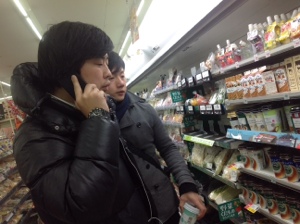コンビニで食べ物を買い込みます。