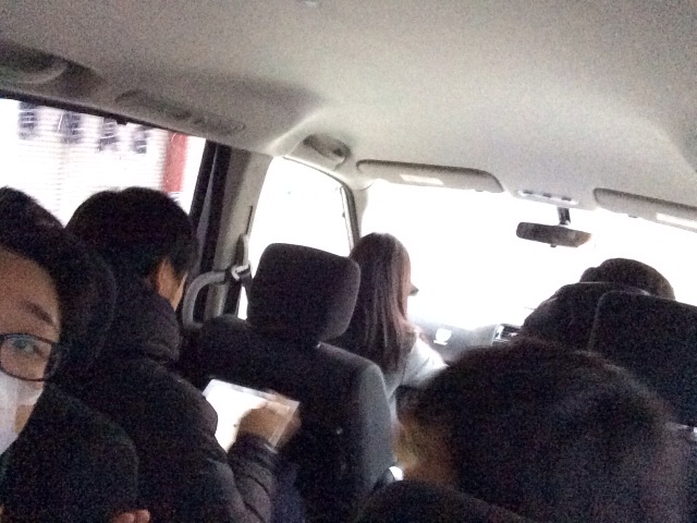 福岡空港へ向けて出発します! 雪で高速道路が一部通行止めのため、少し早めの出発です。