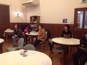 お茶の時間です。 教会の皆さんと、色々お話ししています。