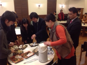 ホテルにチェックイン。 ヨハネくんが慎先生とあいさつしています。