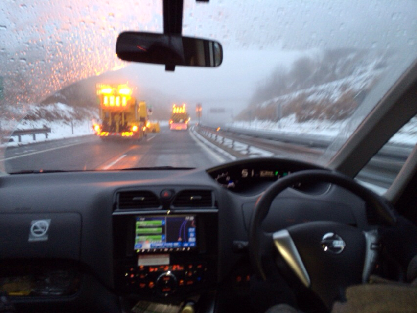 雪、雪です! お祈り下さい。 無事に大分に到着出来ますように。