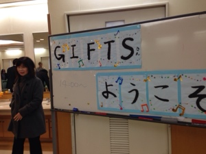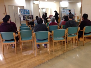 患者さんたちの習字やお花の作品を見てます。素晴らしい!