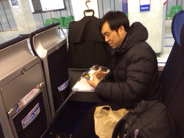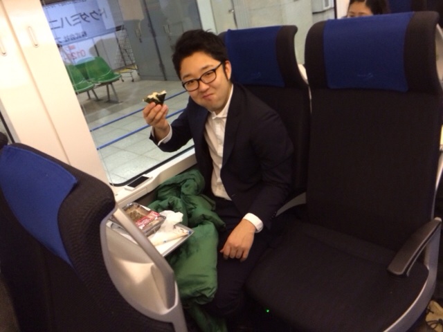 ひささん、ダビデ君、サムエルさん、飲み物を買いに電車の外へ。
