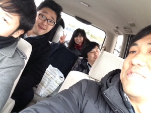 全員でパシャリ! サムエルは完徹ということもあり、仮眠中!