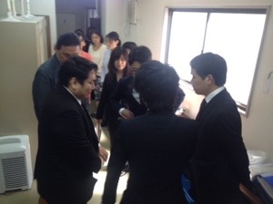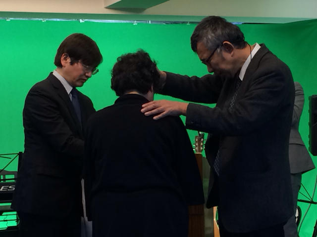 萱野さんとヨハネくん、キブツの出番前に祈り備えます。