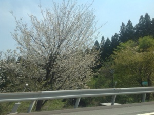 長野に入りました!まだ桜が残っています。