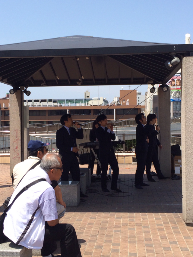 東京から来てるという方々が立ち止まって聴いて下さってます。