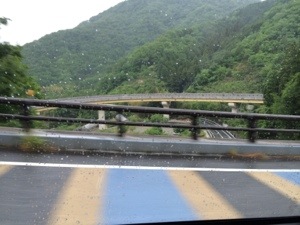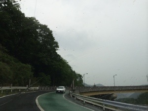 雨なので少しゆっくりめに走ってしまい、先導の村上牧師号が見えなくなってしまっと思ったときに、路肩に停まってハザードを焚いた村上牧師号を発見。良かったと安心して近寄っても、なにも反応がないので、あれ?っと思いながら待っていたら全然知らない人が乗っていました。ただの車違い。村上牧師はその200m先で待ってくださっていました。ハイブリッドホワイト恐るべし‼︎