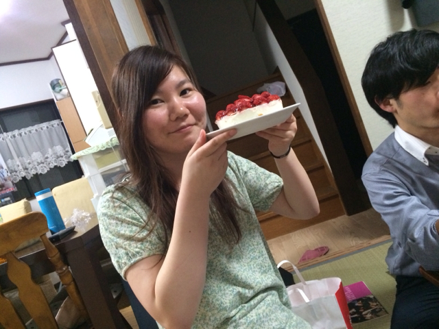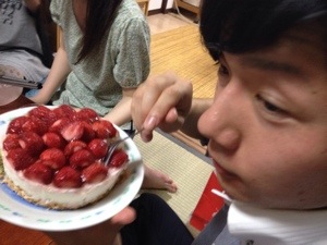 シオンちゃんが昨日遅くまで、がんばった作のいちごのケーキ!