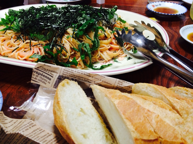 次はたらこパスタが出て来ました! イカも入ってるよ!