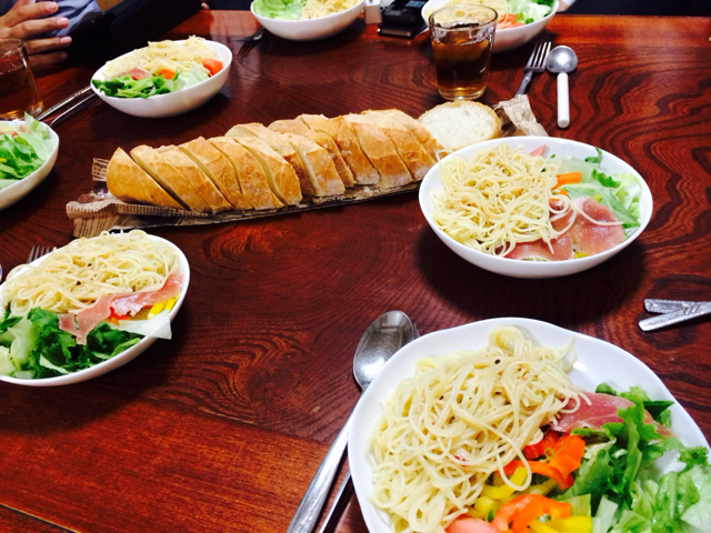 森牧師夫人の手作りのお料理をご馳走になります。 まず、冷たいパスタから。