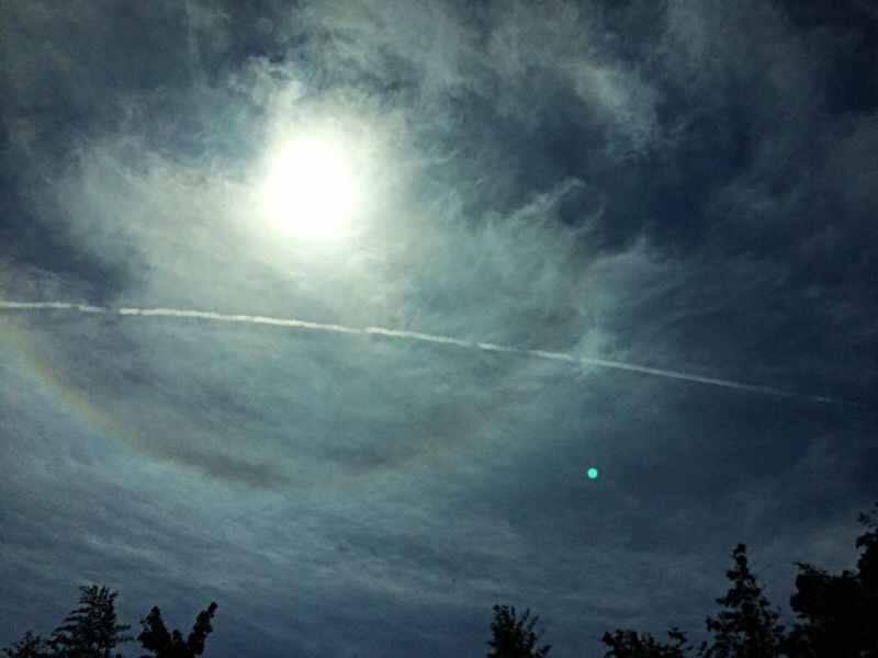 上空にはまだ日暈が。 飛行機雲が突き抜けてます。