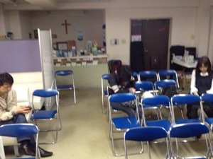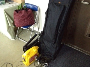 機材を集めて、車の中にいれます! 会堂では祈祷会中!