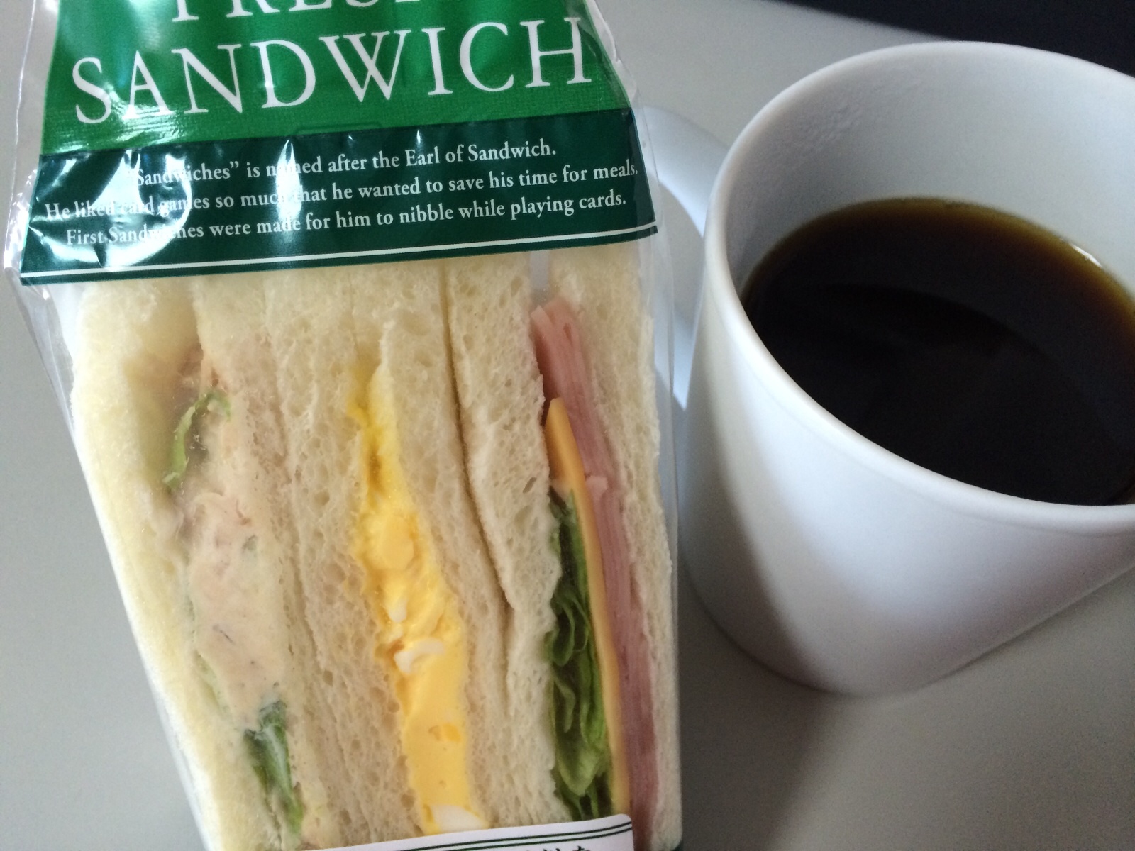 朝、サンドイッチを買って来て、食べています。 Kayano