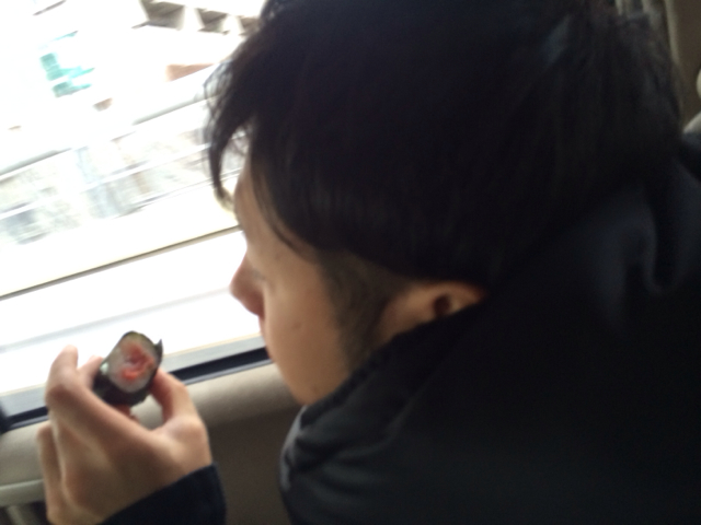 車内がだんだん暖かくなり、ダウン脱ぎ始めました!