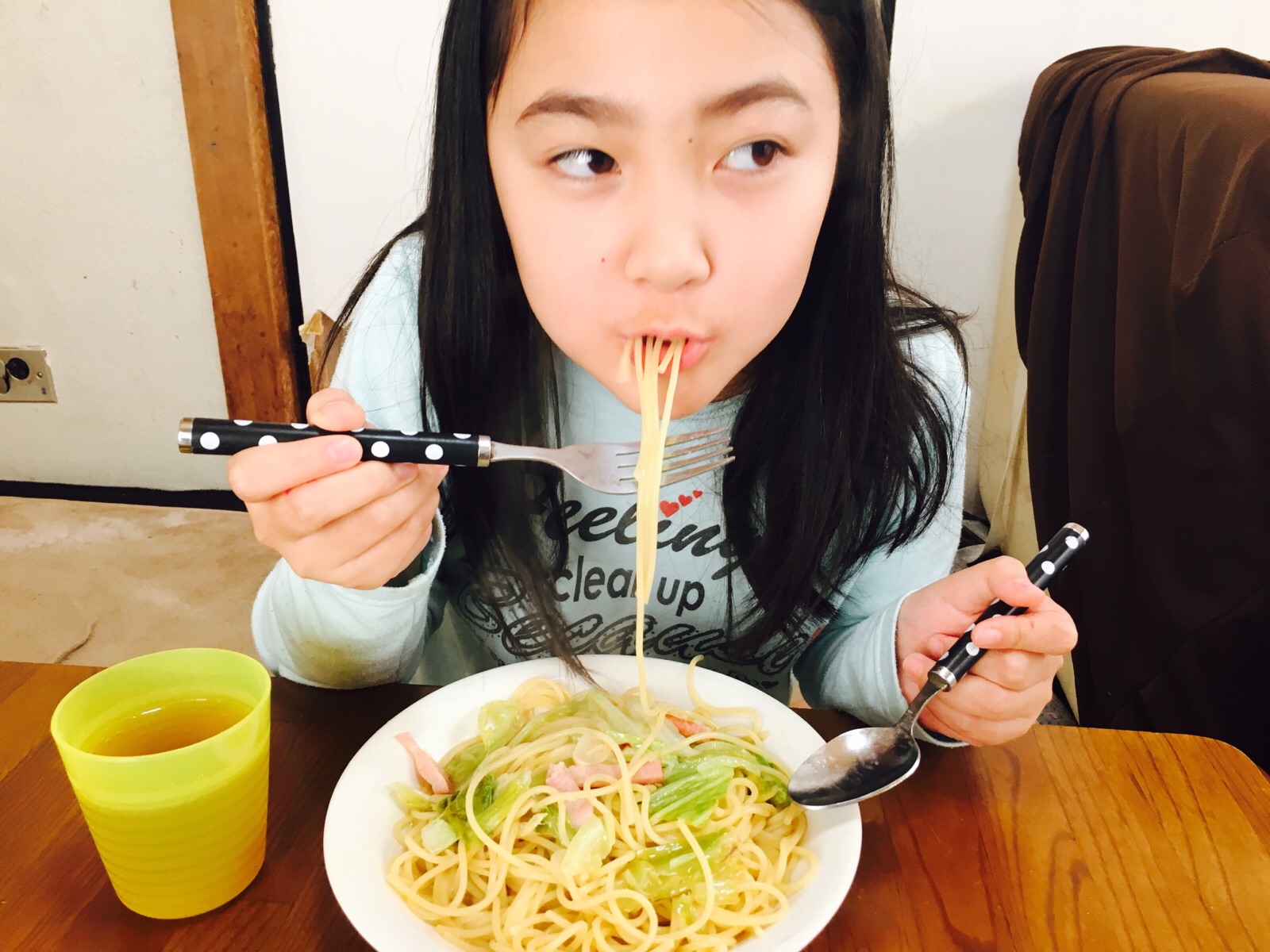 ベーコンとキャベツのペペロンチーノ しるしさんも大満足( ̄▽ ̄) keiko