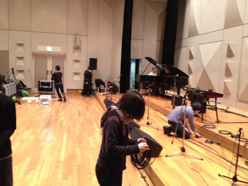 グラウンドピアノ調整しています。設営
