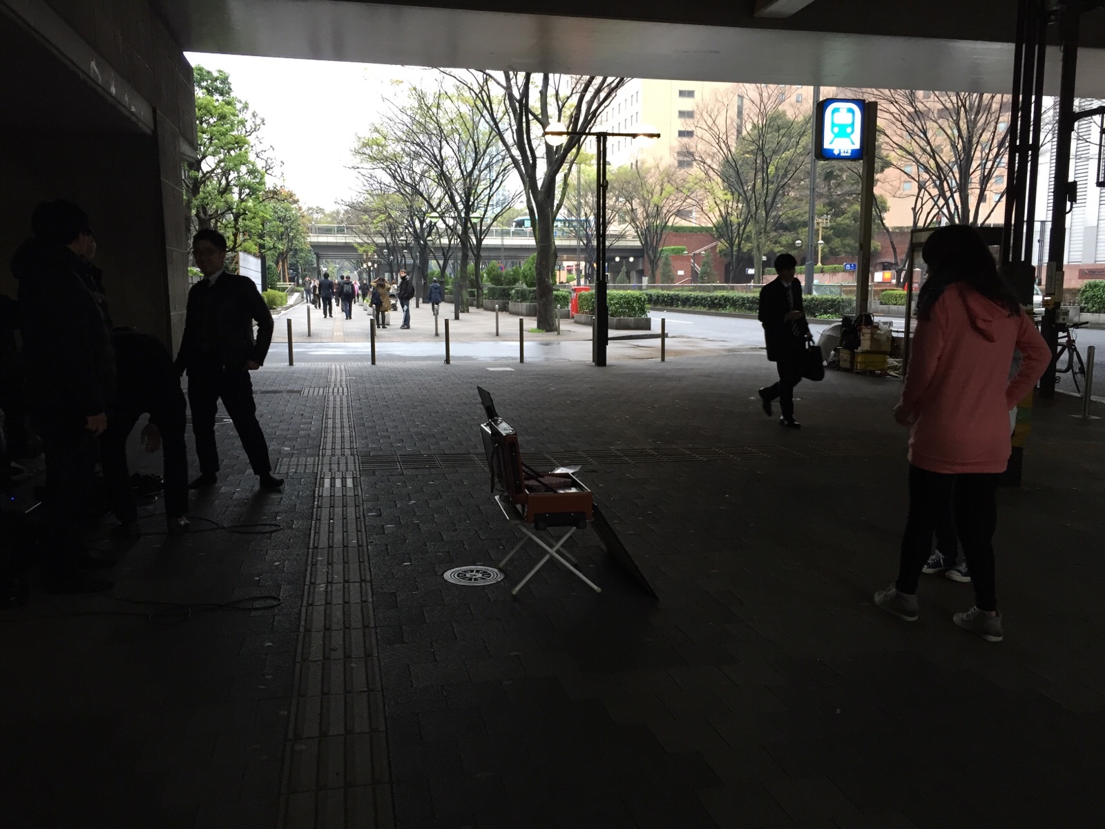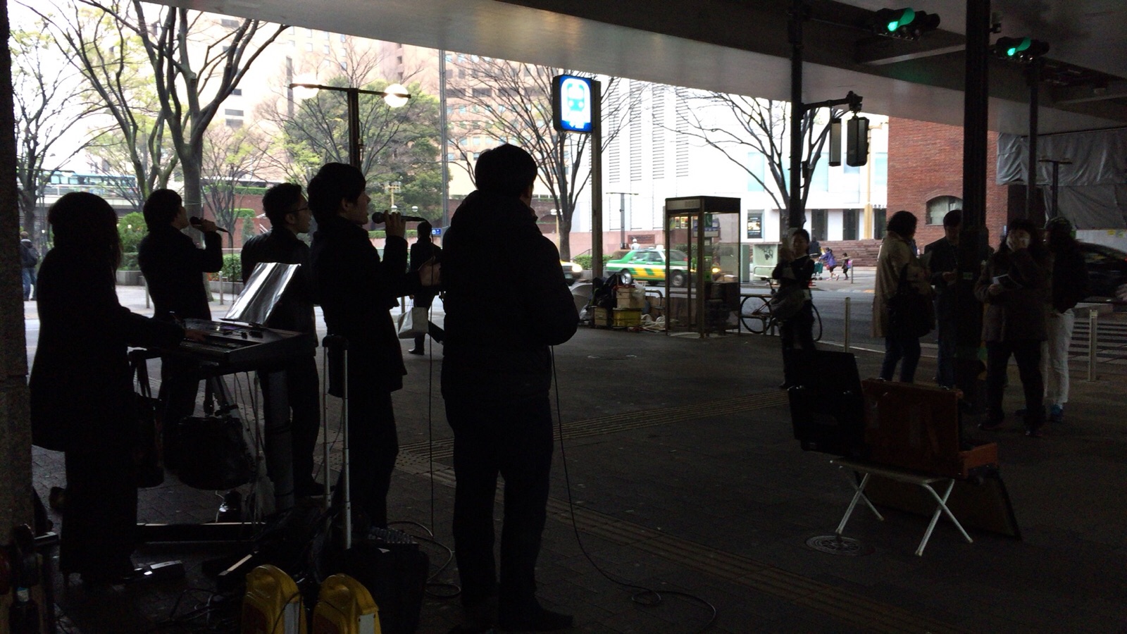 立ち止まって聴いています。