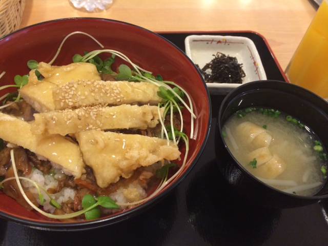 雲虹の原稿書き終えて、お昼は空港で食べます。 マグロ天丼だそう。 変わってる〜! あっ感謝します! Kayano