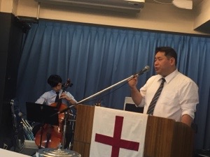 真境名さんが賛美リーダーです。 ダビデさんはチェロを演奏中!