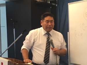 真境名さん、メッセージの時。 白馬キャンプで起こった事柄をお話しています。