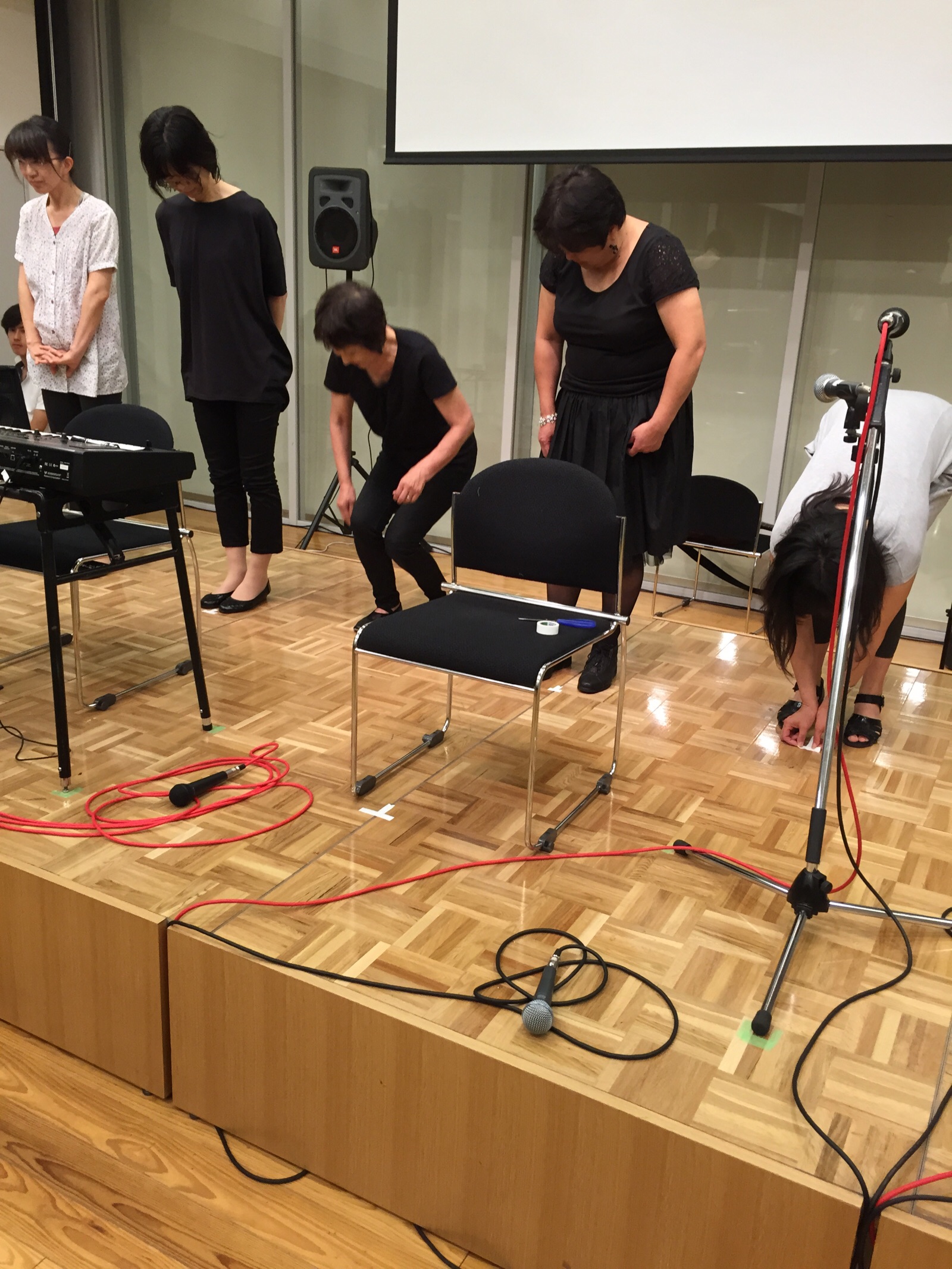 立ち位置テープ貼り中!