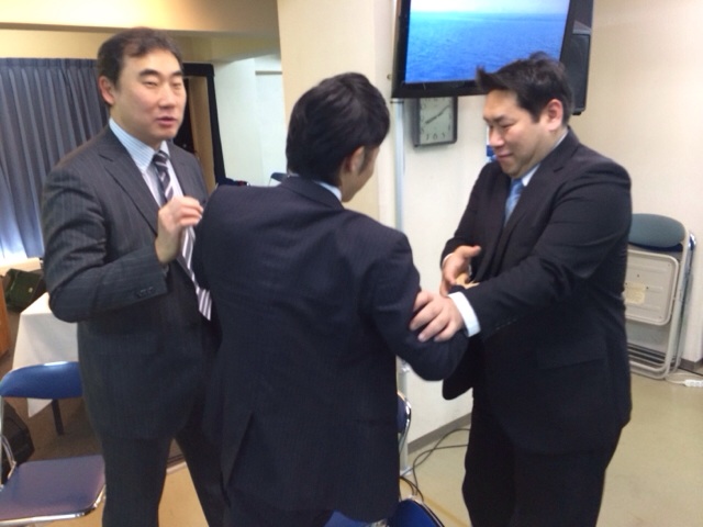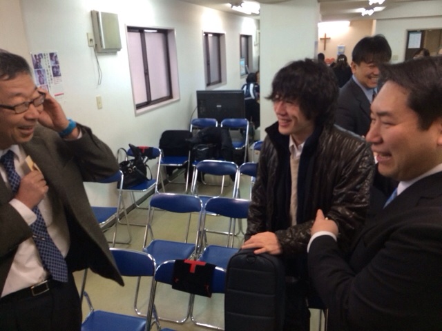 会堂では、三人がじゃれあってます。