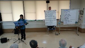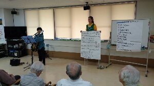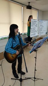 ベテラン 女性職員さんが、 ずっと お一人で、椅子の上に立って、みんなで歌う曲の歌詞を持って下さいました! 感謝します!!