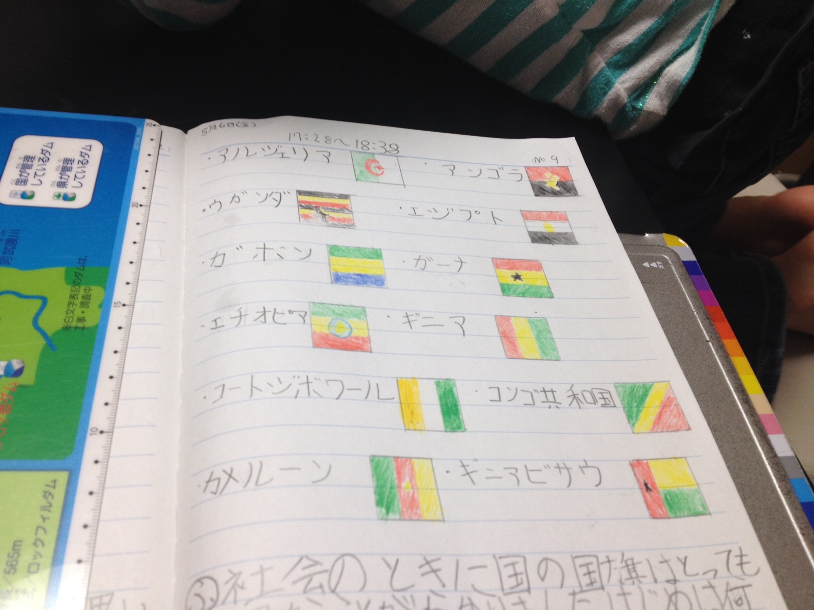 昨日から自主学習に国旗を書いているようです。沢山の国旗、キレイです。