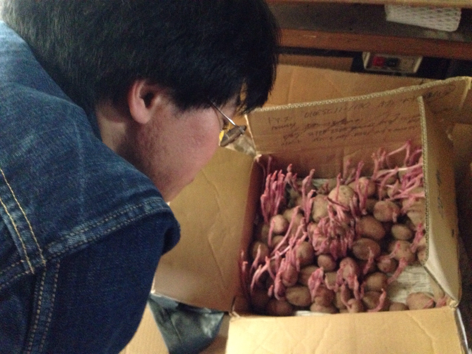 暗い倉庫の中のジャガイモを頂こうとして   2016/5月/03 [火] 12:39