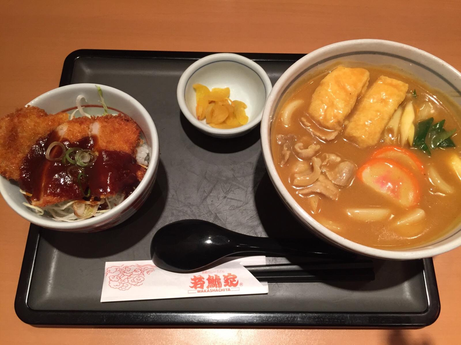 お昼は、名古屋名物若鯱家のカレーうどんです!