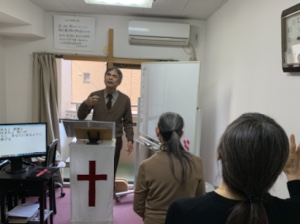 牧師賛美中。来週水曜日は白馬ですね。今回4人で行きます。船橋D