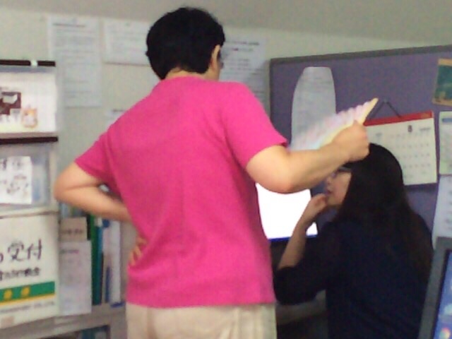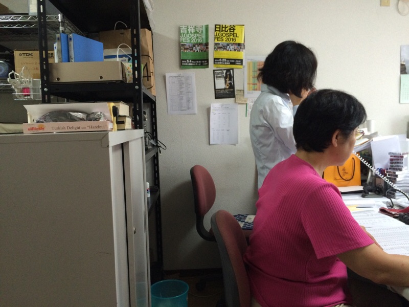 先ほどまでバタバタとしていた教会事務所!今は、今村さんとふたりで…ちょっとバタバタ…?!