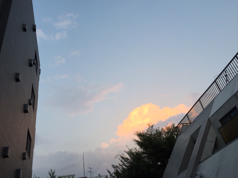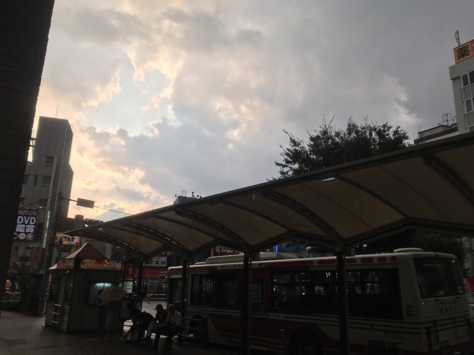 高円寺、降りたらスコール並みに雨降っています。空がきれい!Imai