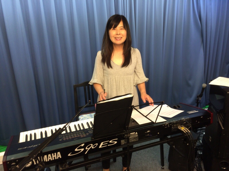 会堂のキーボードで、萱野さんが何かチェックをされていました!