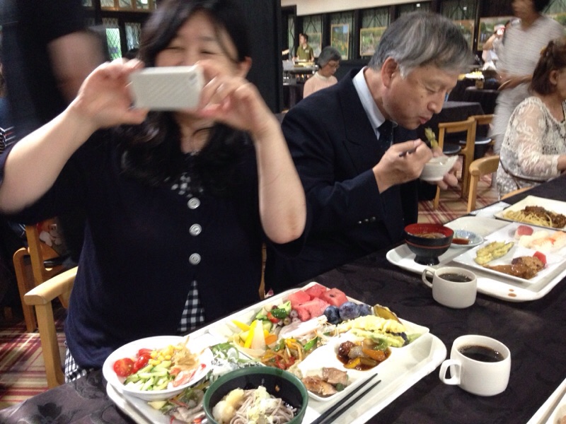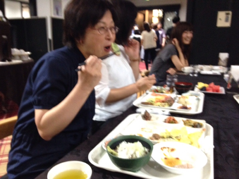 司会の大役を終えてのご馳走を召し上がるおふたり〜