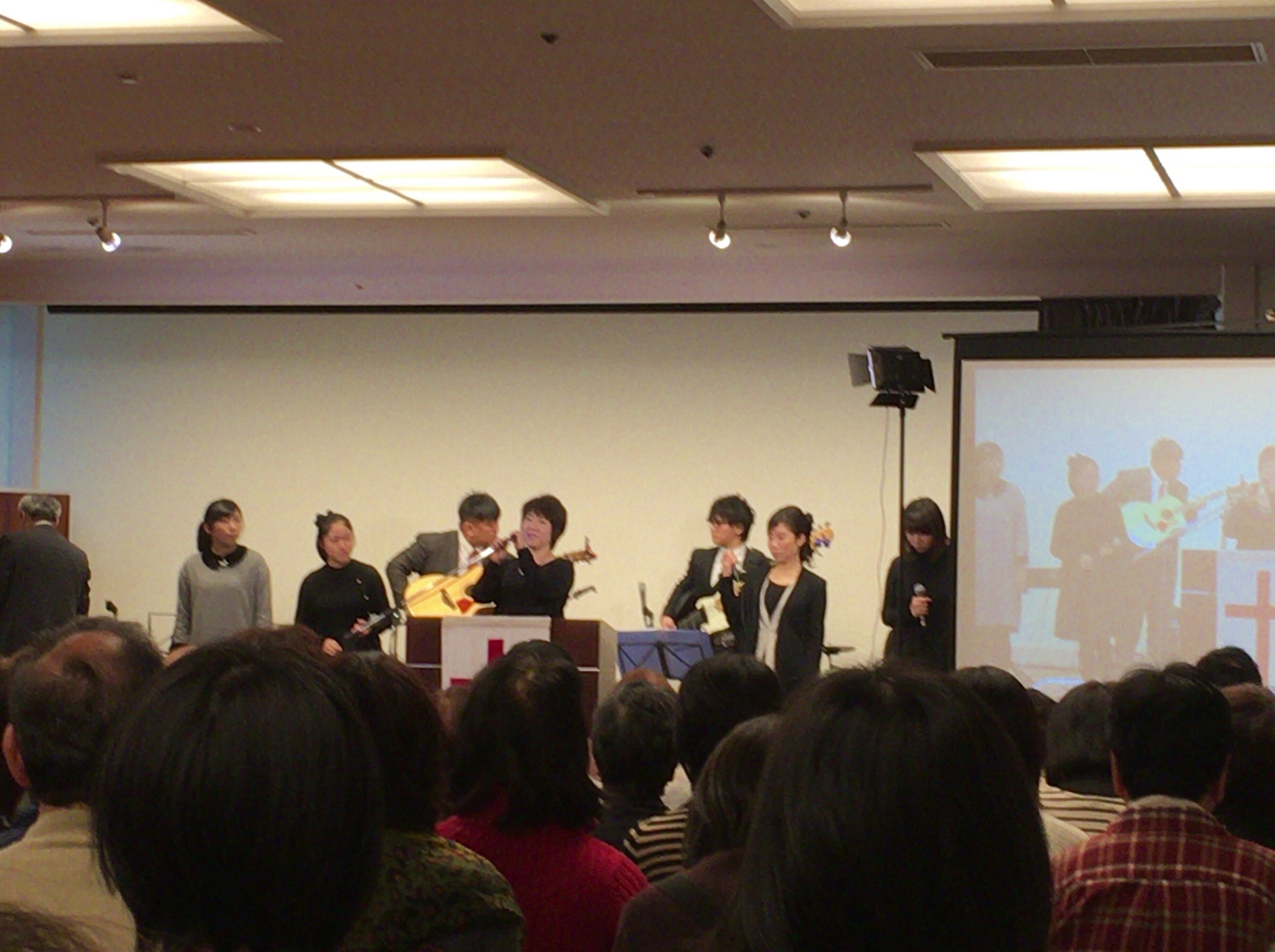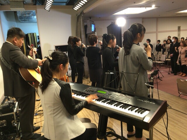 賛美をもって主をたたえます! 賛美リーダーは四日市シオン教会の皆さんです。