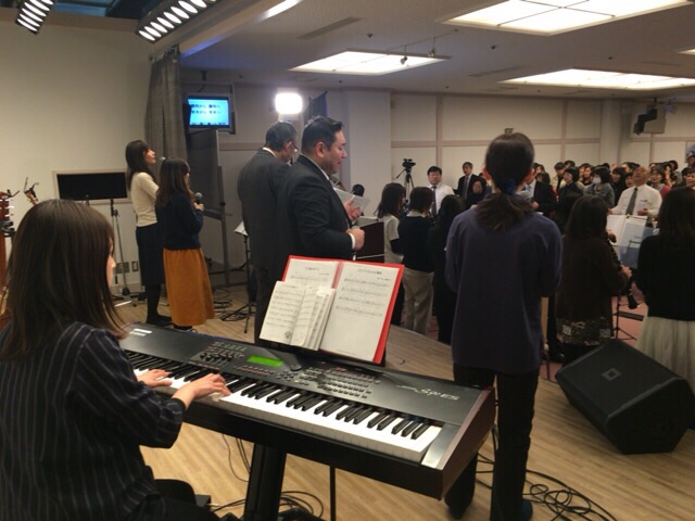 東京アンテオケ教会の牧師である秋元さんが導かれる賛美の時です。