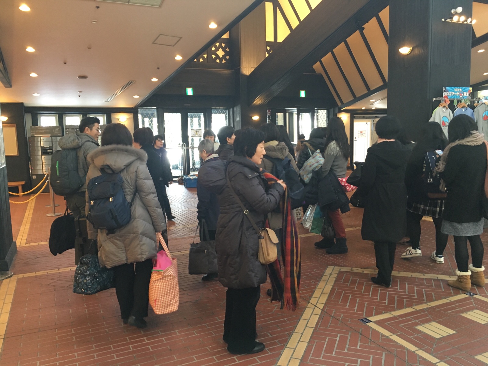 1号車バスに乗る方々もロビーで待っています。