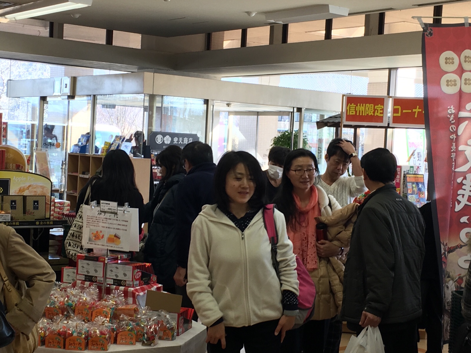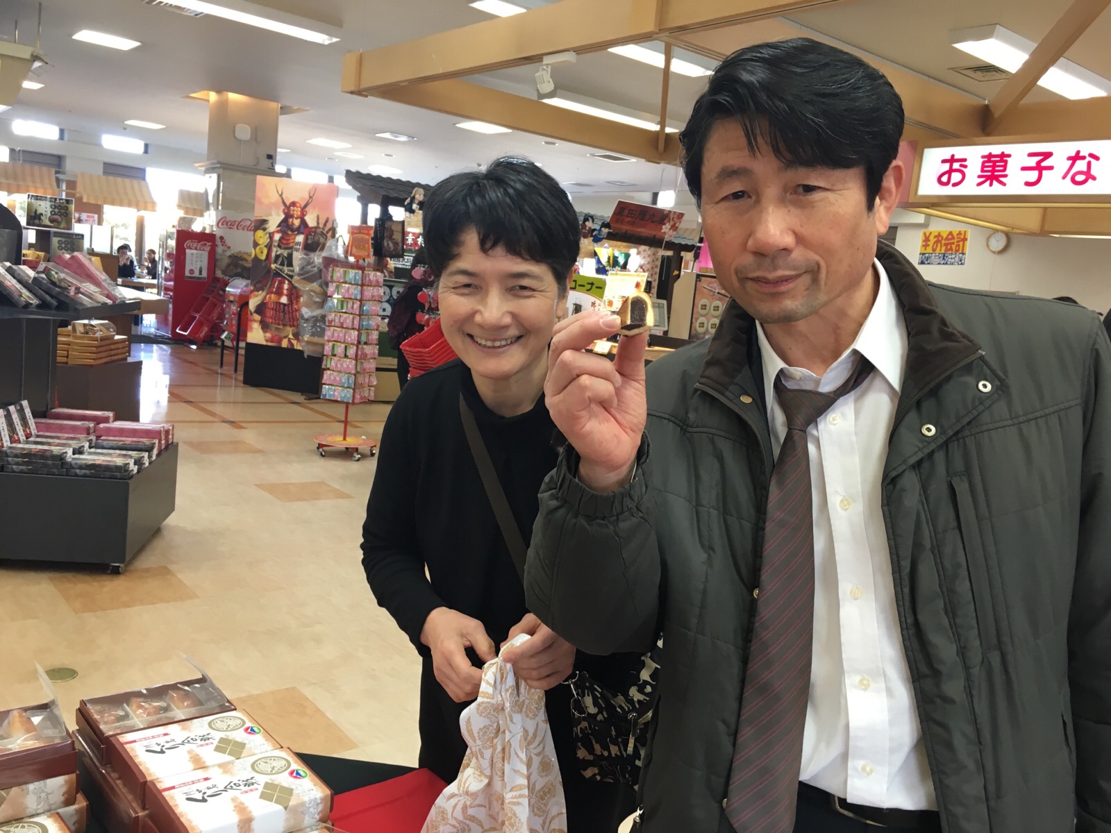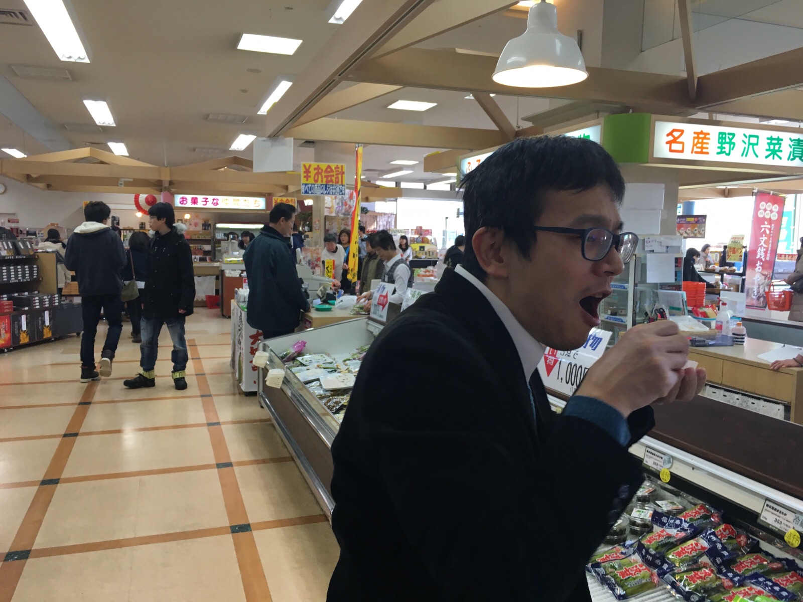 野沢菜の試食を食べる小畑さん アンテオケバス2号車