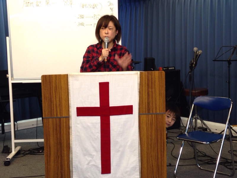 ミャンマー教会に遣わされた証を親子でされています!右下でチラッと可愛い顔が見えています(*^^*) oji