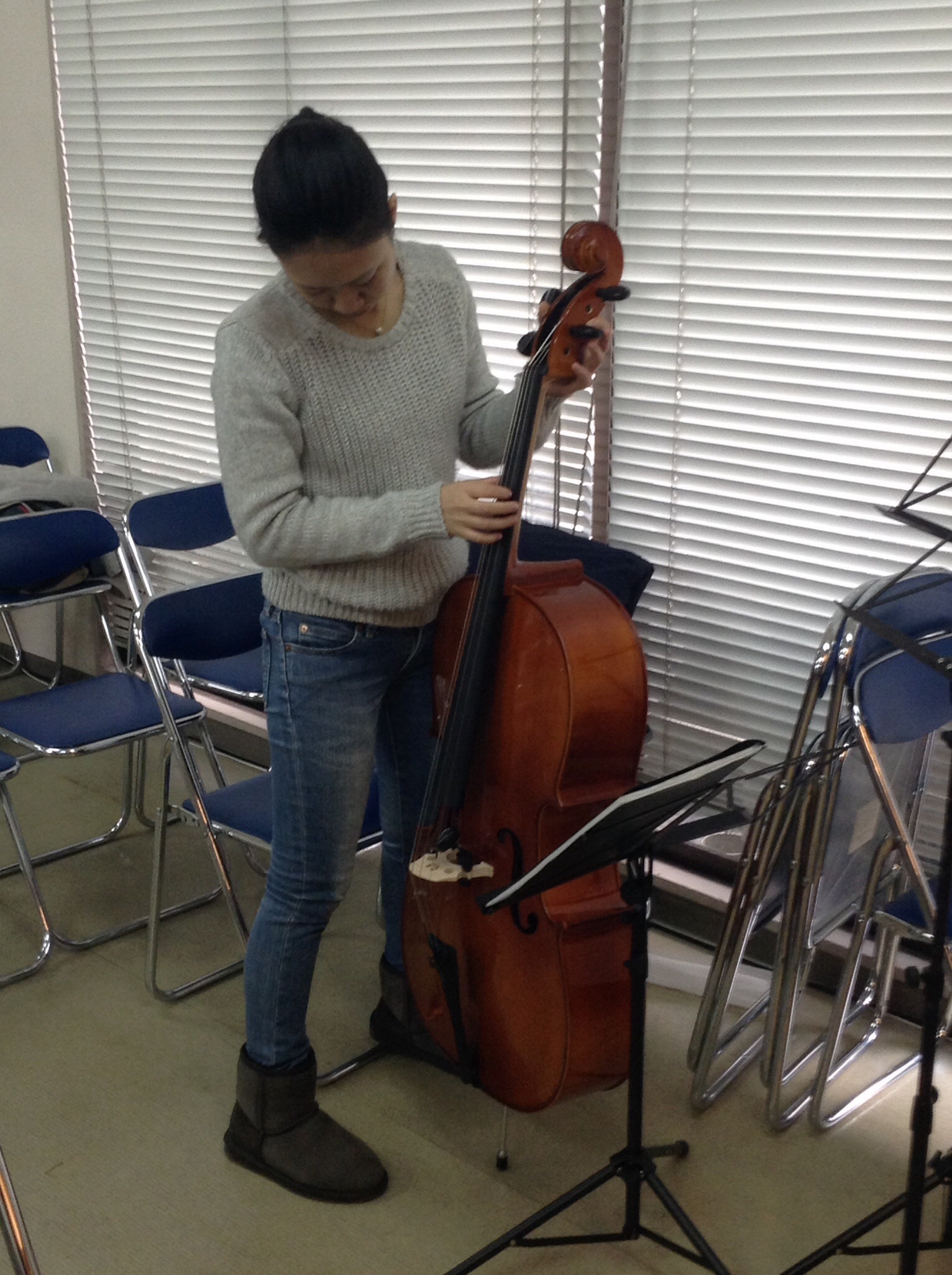 なにげに新しいチェロを調弦するゆいちゃん。わた