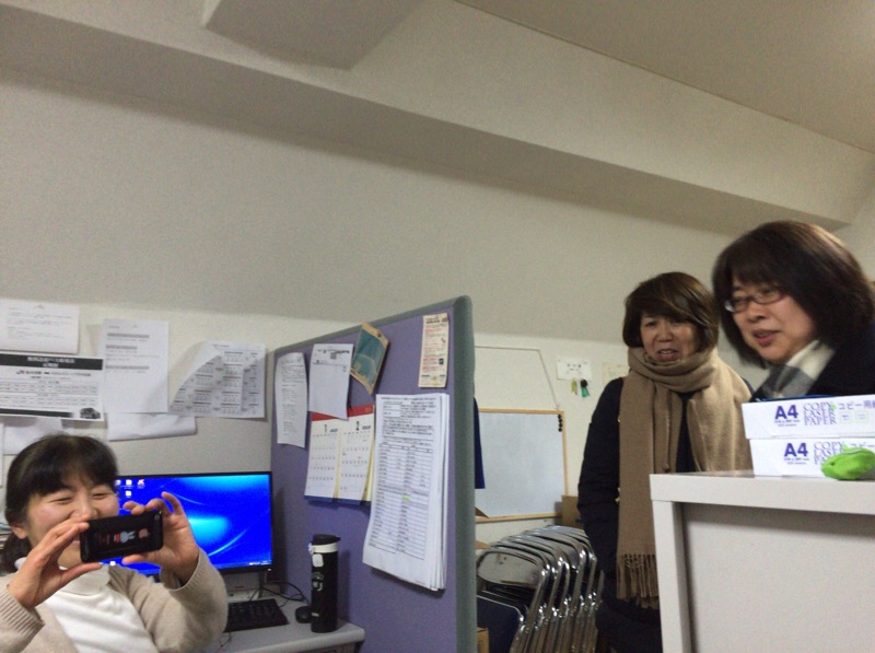 みぎわさんが、いやしの集いの後に事務所に寄ってくれました。お母様の渕野さんもキャンプに参加されます! kato