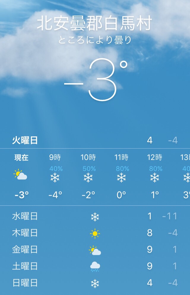 今朝のちちぶは快晴☀︎ 明日の白馬は雪マークです。 やまなか